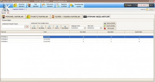 Analiz raporlamalar sayesinde hangi günlerde araç giriş ve çıkışlarının daha aktif olduğunu “Otopark Geçiş Adetleri” raporlarından görüntüleyebilirsiniz. Ayrıca raporlamalarda bu yıl, bu ay, bu gün ve bütün bir zaman aralığı verilerek kullanım bilgilerinizi raporlayabileceksiniz. Rapor alanlarında kullanılan gelişmiş yazılım dili sayesinde sabit rapora bağlı kalmadan istenilen raporu kullanıcı seçimine bağlı kalarak rapor oluşturabilmektedir. Alanlar eklenebilir ve çıkartılabilir özelliği olduğundan raporu kişiselleştirmeniz için kolay bir kullanım olmaktadır.