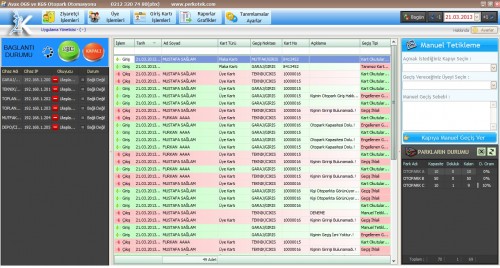 Ekranda çevrimiçi geçişlerde geçiş tipi bilgisi, açıklama, kart numarası, geçiş noktası, kartın türü, tarih ve ad-soyad bilgileri görüntülenir. Detaylı görüntü bilgisi için geçiş bilgisinin üzerine çift tıklayarak üye bilgi penceresine erişebilirsiniz. Ana ekrandaki “tarih bar” sayesinde önceki günlerin bilgilerine kolayca erişebilirsiniz. Üye hakkındaki tüm bilgiler üye kaydı ekleme penceresinde barındırılabilmektedir.