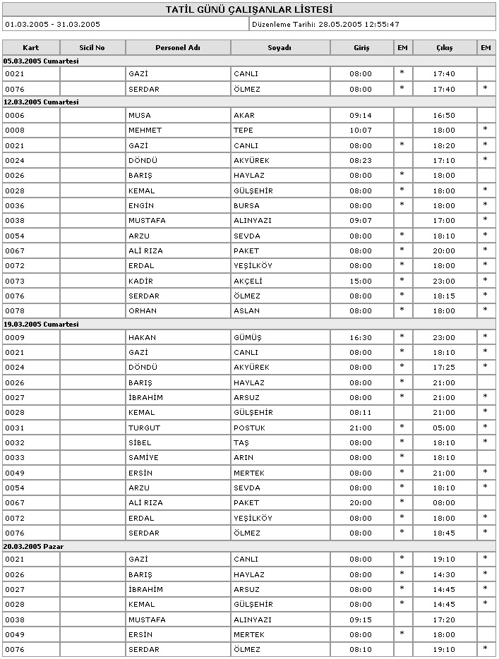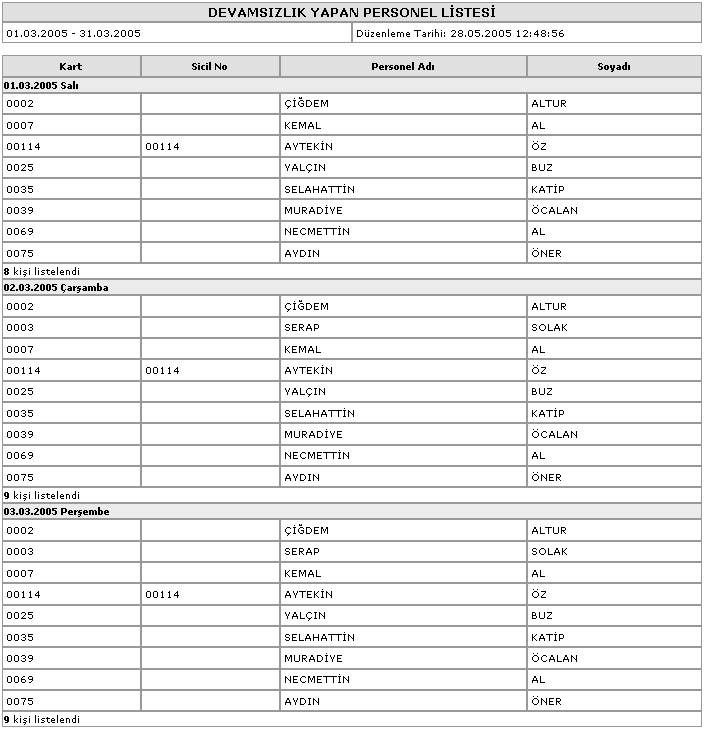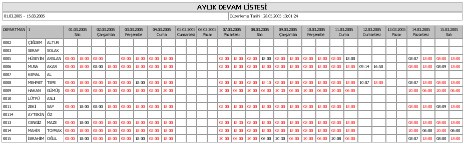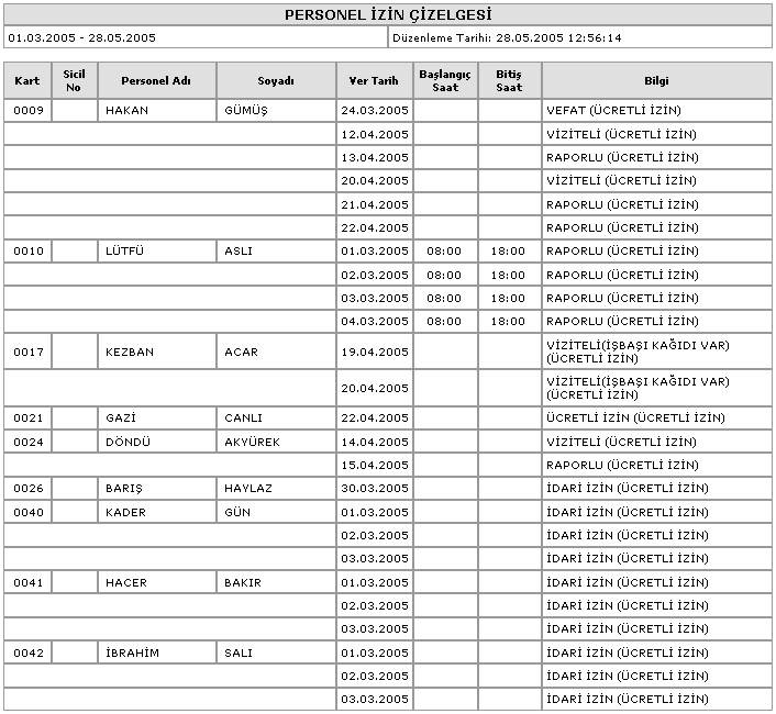 Kişi ve genel bazda yaptığınız raporlamalarda bulunan durum hanesinde; devamsızlık hafta tatili ve izni ayrıntılarını görebilirsiniz.