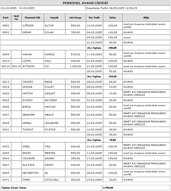Eğer ödemeleri bankadan yapıyorsanız; bankanızın istediği bilgileri göndererek personellerin kartları ile maaşlarını almasını sağlayabilirsiniz. Eğer ödemeyi elden yapıyor iseniz personele ait hesap dökümünü alabilirsiniz.