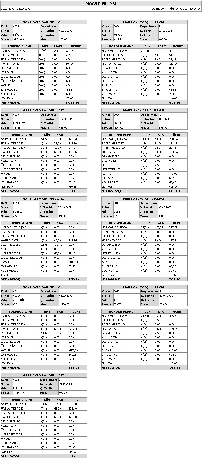 Standart bir bilgisayar ile çalışabilir ve ekstra olarak bir bilgisayar gerektirmez. İstediğiniz tarihler arasında maaş bordrosunu alabilirsiniz.