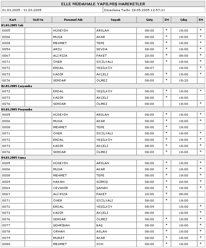Görsel değişiklikleri ile hızlı erişim ve kullanım kolaylığı sunarken, giriş ve çıkış esnasında elle müdahale yapıldığında bunu görebilir ve kullanıcıyı tespit edebilirsiniz. Elle yapılan değişikliklerde program ilgili bölümün yanına işaret atar ve firma yetkililerinin de program kullanıcısını böylelikle kontrol etmesini sağlar.