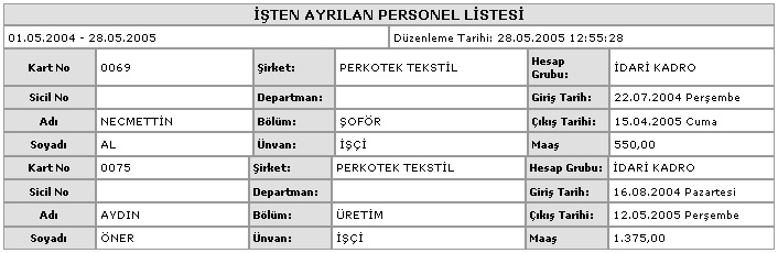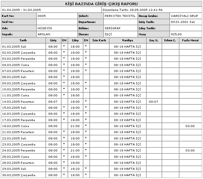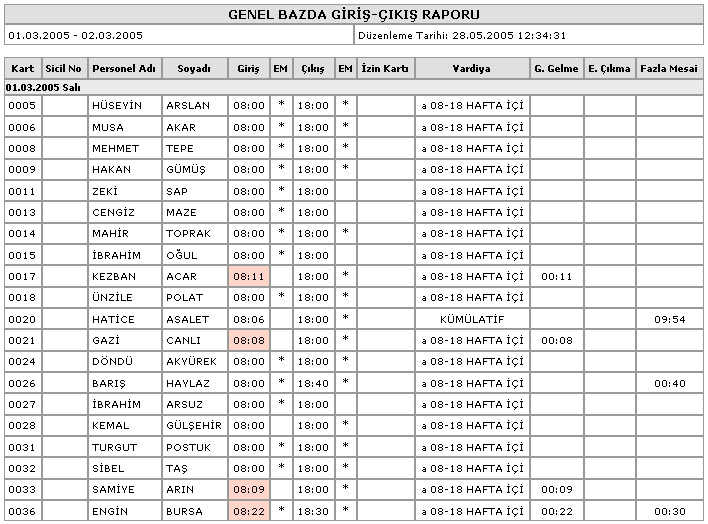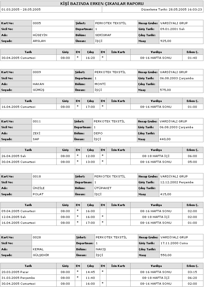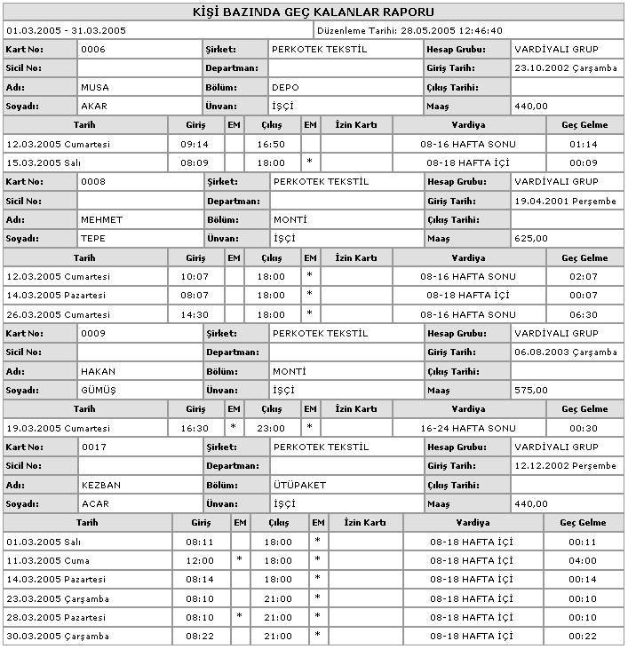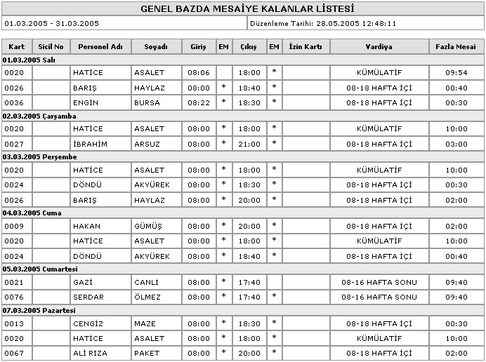 Bütün raporları kişi, genel, firma ve bölüm bazında alabilirsiniz. Rapor formatı istendiğinde kullanıcılar tarafından pasif ya da aktif edilebilir.
