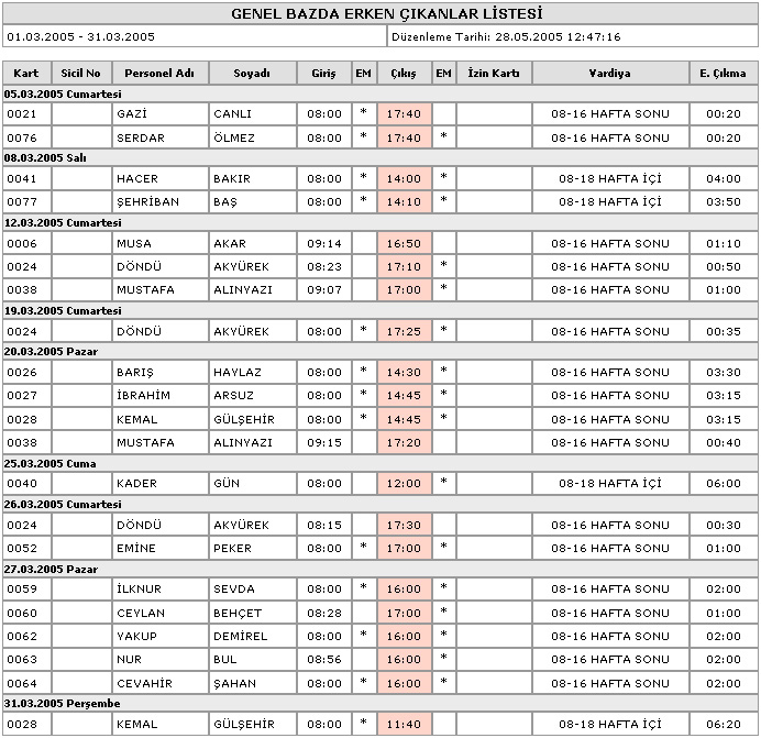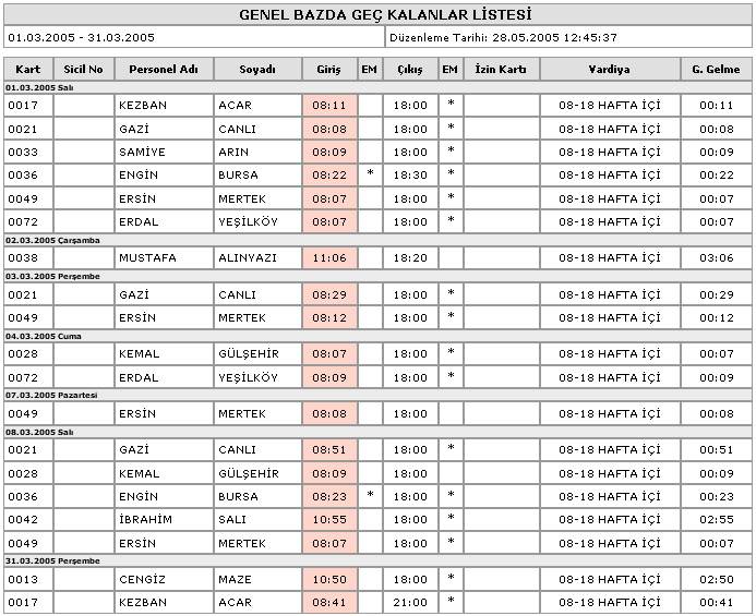 Kişi bazında yapılan giriş ve çıkışlardaki erken çıkma veya geç gelme gibi eksikliklerin toplam süresine erişebilirsiniz. Geç kalmaya, erken çıkmaya ve keyfi devamsızlıklara verilen tolerans ile cezai kesintileri istediğiniz oranda yapabilirsiniz.