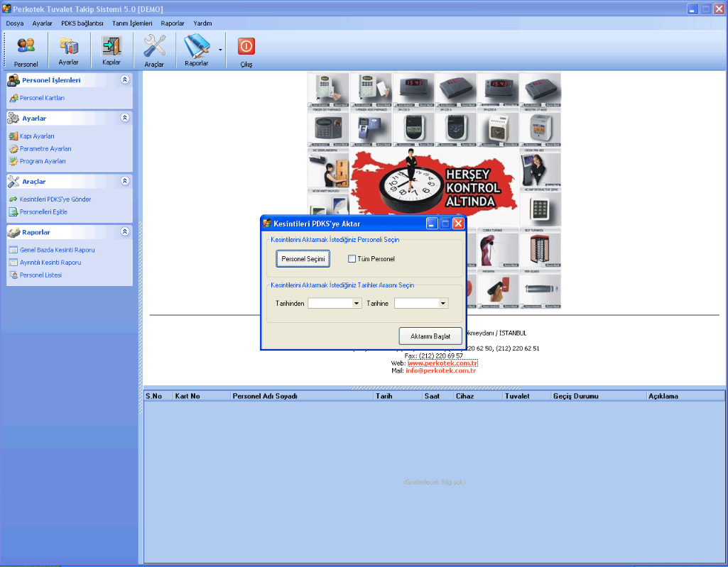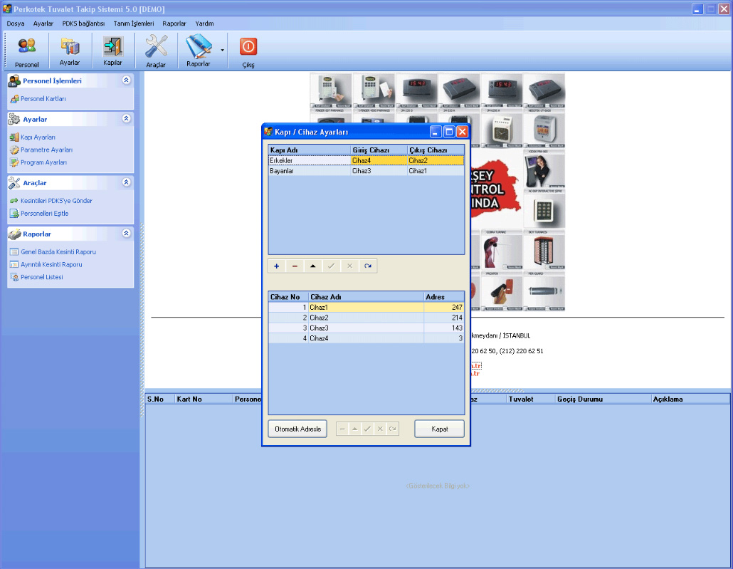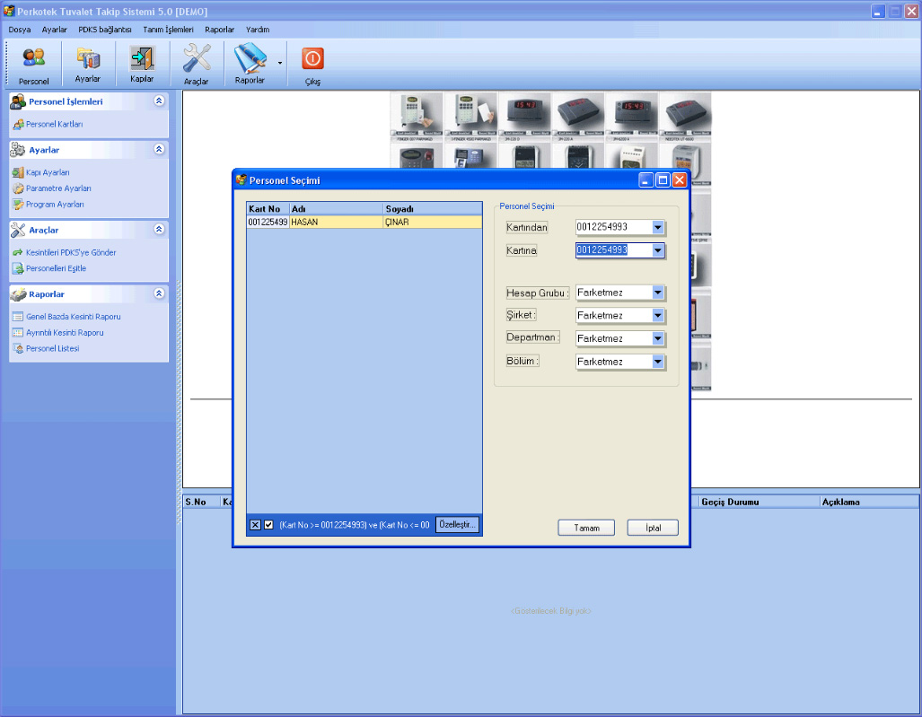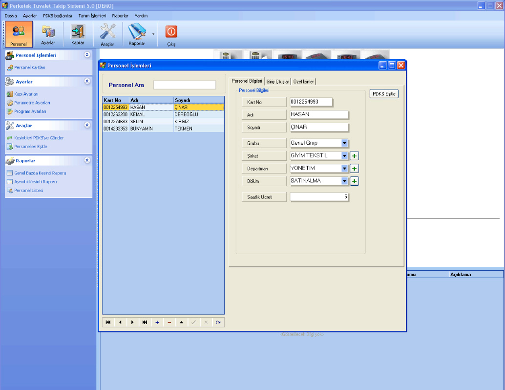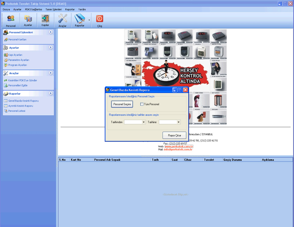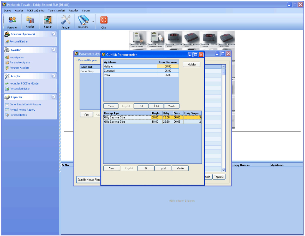 Bu sistemlerle örneğin; bir personelin günde 4 defadan fazla tuvalete gitmesini engelleyebilirsiniz. 5. kez tuvalete giden personel kartını okutmasına rağmen kapı açılmayacaktır. Personelinizin boşa geçirdiği vakitleri toplayarak ister günlük isterseniz aylık olarak rapor alabilirsiniz. Eğer PERKOTEK PDKS (Personel Devam Kontrol Sistemi) kullanıyorsanız; WC kesintisi adlı bordro alanında görebilirsiniz. Maaşları buradan otomatik olarak kesilir.