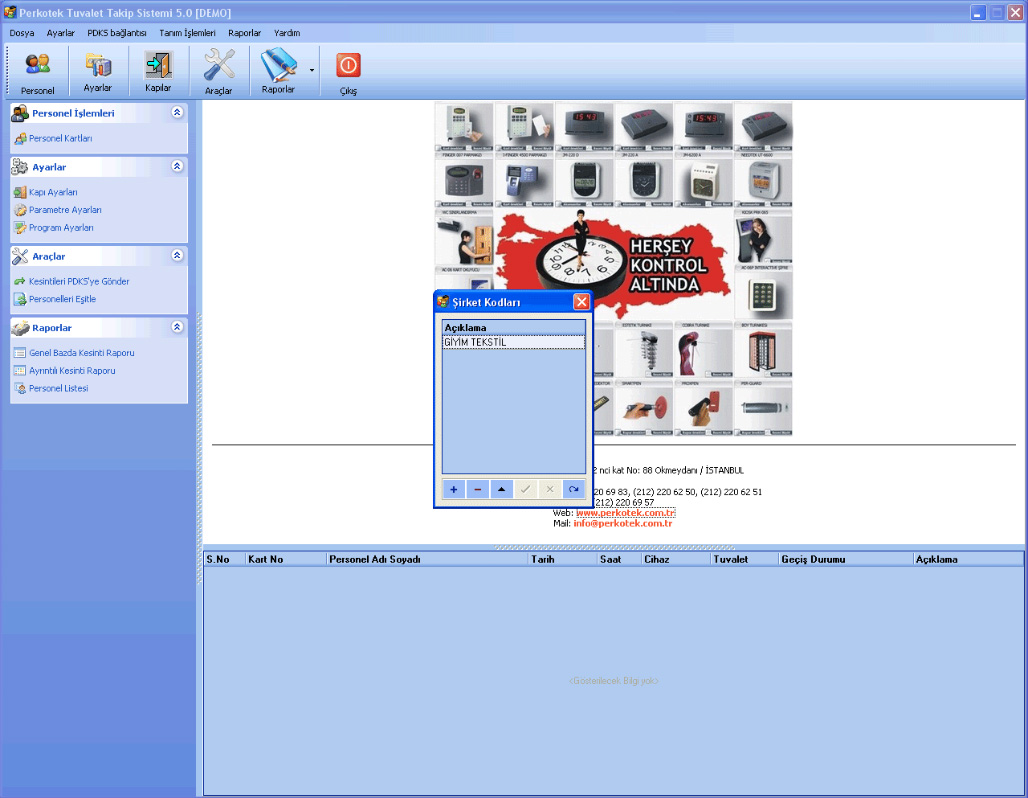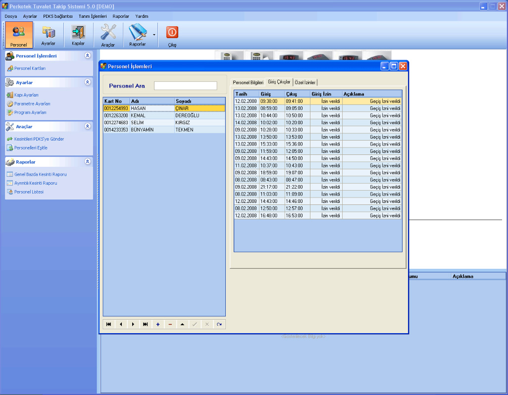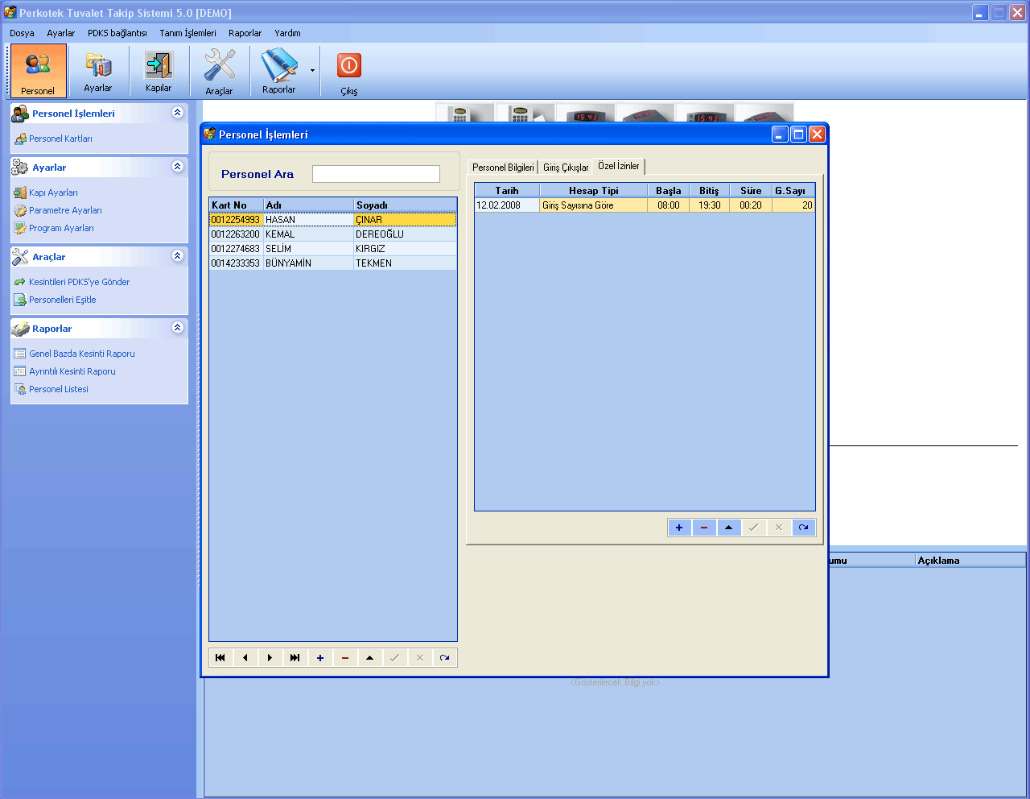 Tuvalet Takip Sistemi; personellerin mesai saatleri içerisinde tuvalette harcadıkları zaman kaybını giderebilmeniz için üretilmiş bir yazılımdır. Personellerin çalışması gereken zaman diliminde tuvalete gitme bahanesi ile işten kaytarması, sohbet ortamı yaratması veya sigara içmesini engelleyebileceksiniz.
