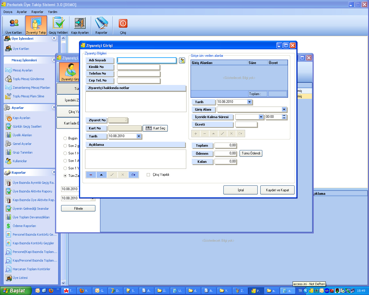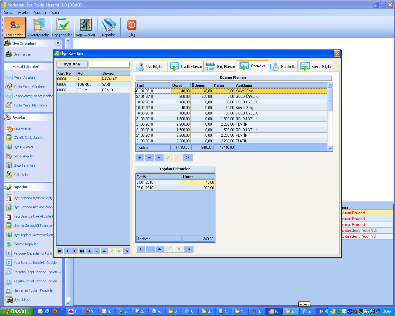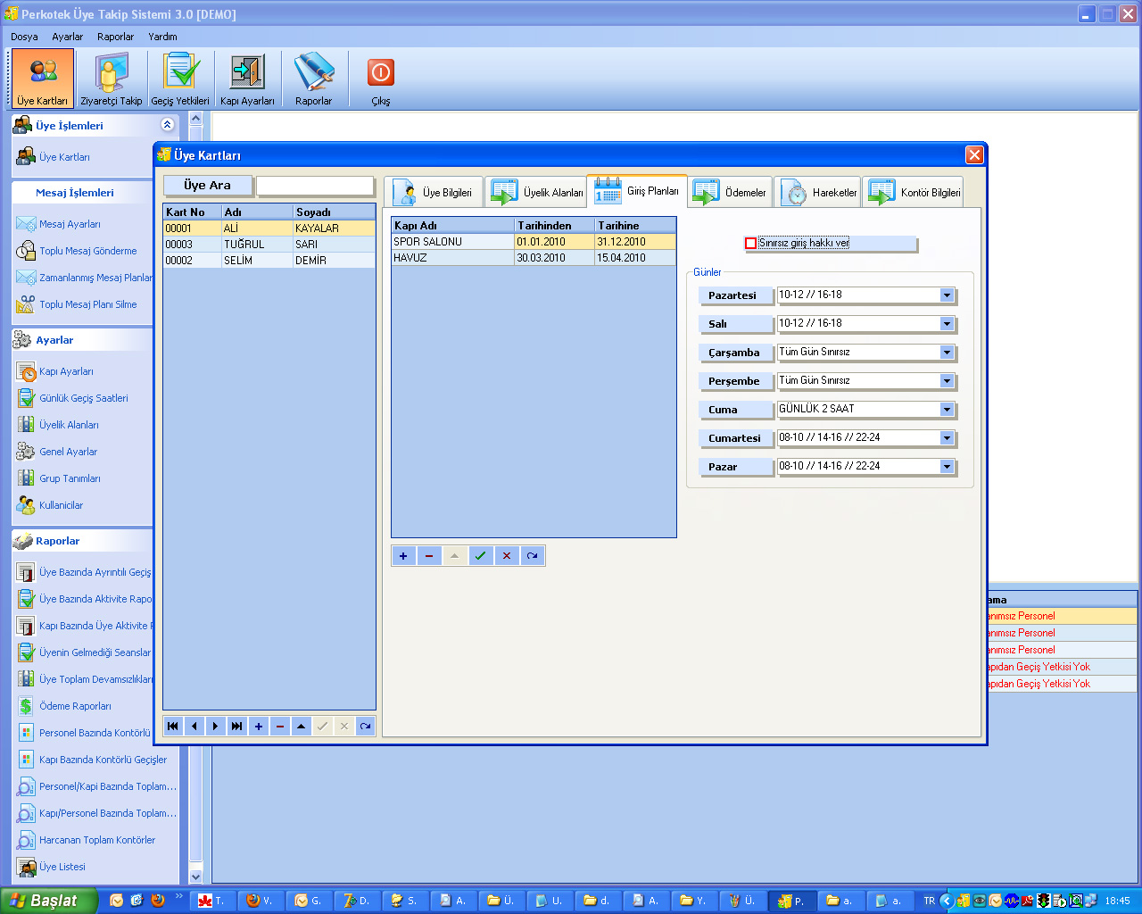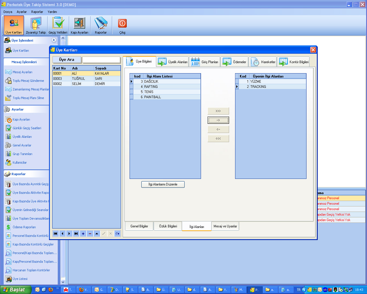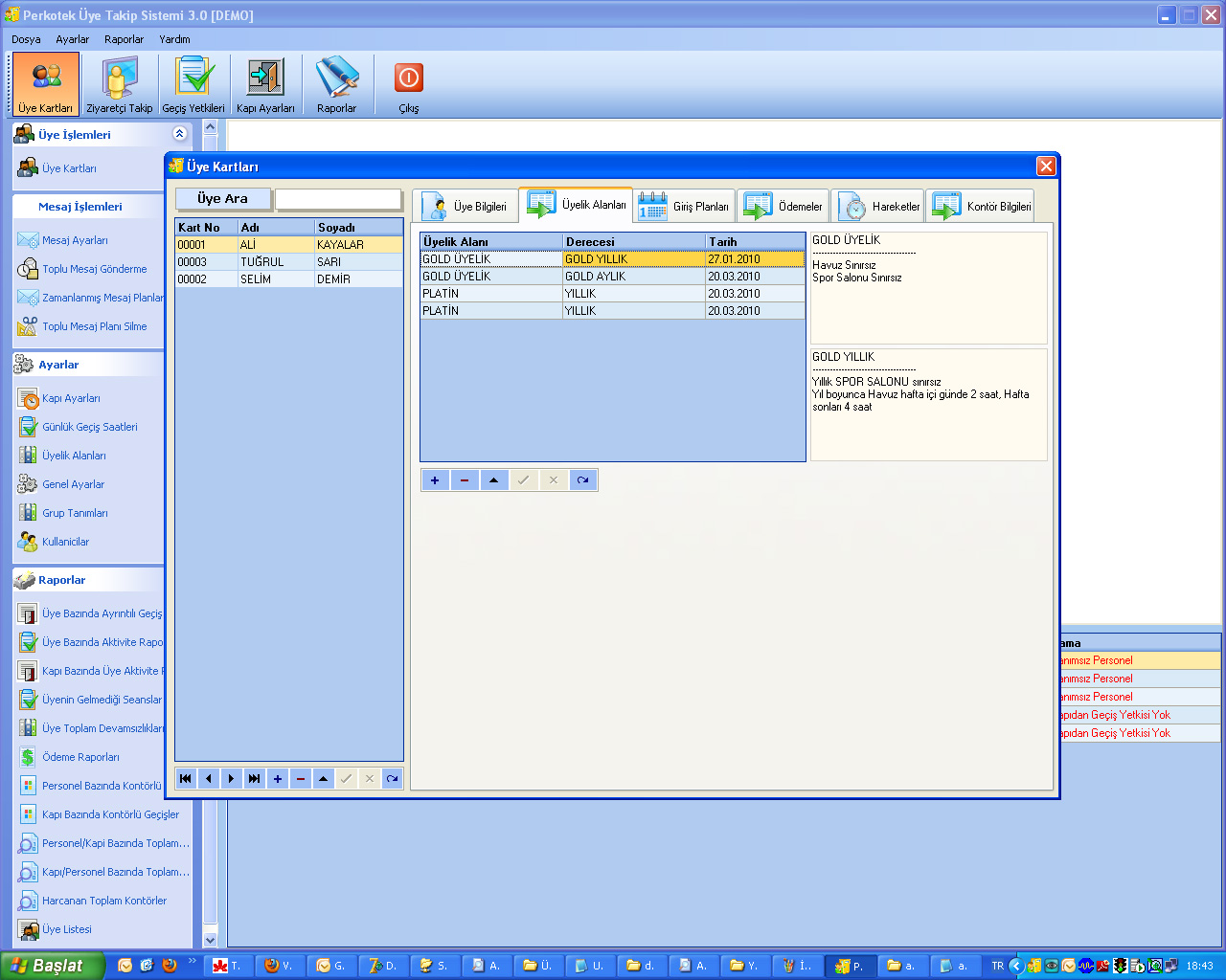 Üye Takip Sistemi; spor salonları, Fitness Centerlar ve kulüp üyelerinin hangi alanı ne kadar kullandığının bilgilerini ve üye oldukları alanlara girişlerini sınırlama veya raporlayabilmektedir.